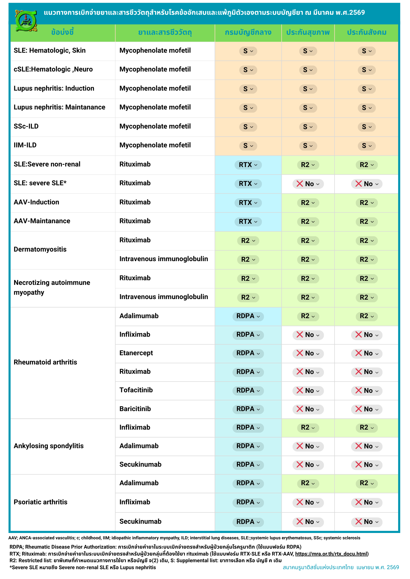 สมาคมรูมาติสซั่มแห่งประเทศไทย สรุปแนวทางการใช้ยาสำคัญ เพื่อให้แพทย์และบุคลากรทางการแพทย์ใช้ประกอบการดูแลผู้ป่วยได้อย่างเหมาะสม