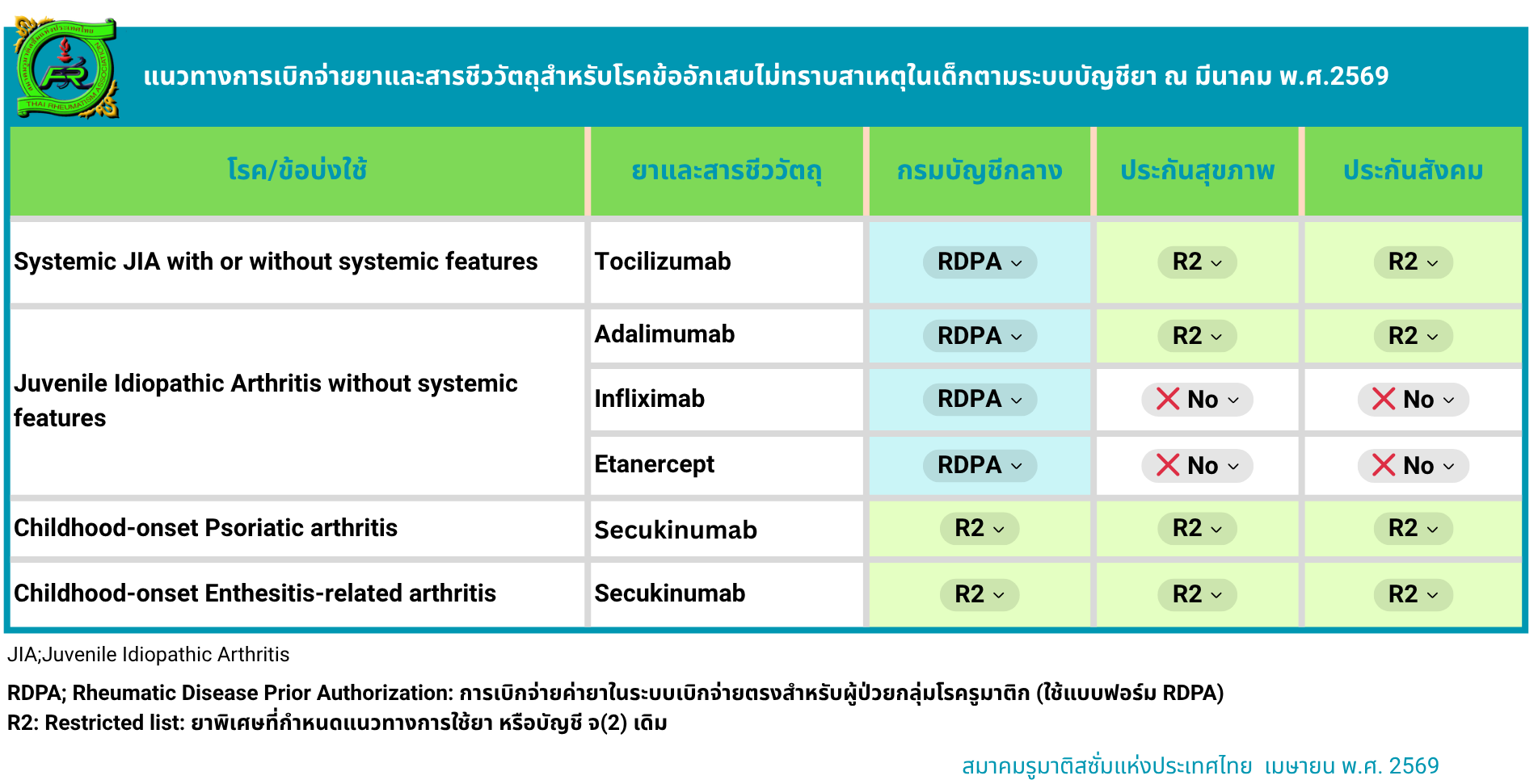 สมาคมรูมาติสซั่มแห่งประเทศไทย สรุปแนวทางการใช้ยาสำคัญ เพื่อให้แพทย์และบุคลากรทางการแพทย์ใช้ประกอบการดูแลผู้ป่วยได้อย่างเหมาะสม
